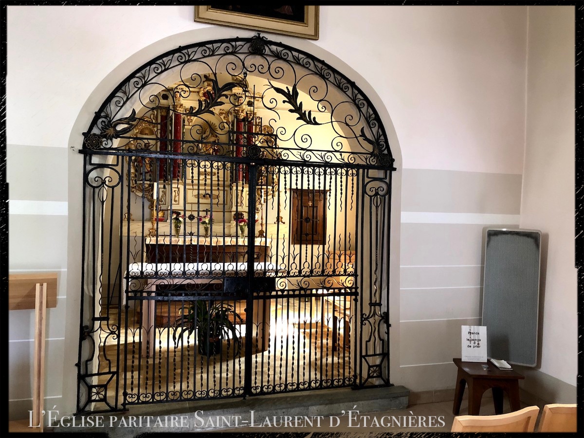 L’Église paritaire Saint-Laurent d’Étagnières, son retable baroque, sa grille, ses sculptures