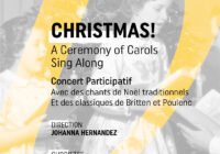 Concert Samedi 20 décembre à 15 h – Abbaye de Montheron Christmas A Ceremony of Carols, Sing along. Concert de Noël et chantée avec le Choeur Vivace Concert participatif Avec des chants de Noël traditionnels et des classiques de Britten et Poulenc. Johanna Hernandez, direction, Thierry Orber au piano. Entrée libre, collecte (prix conseillé : 30.- plein, 20.-… Lire la suite »