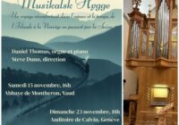 Concert Samedi 6 décembre à 20 h et dimanche, 7 décembre à 11 h 30 Lieu: Abbaye de Montheron (route de l’Abbaye 3, 1053 Montheron (Lausanne, près de Cugy). Concerts de l’Avent avec Atout Chœur, Chœur Mixte de Cugy et environs, direction Florian Bovet, Benoît Dupont, piano, Daniel Thomas, orgue. Mélange de gospels, chants classiques/traditionnels et de Noël.… Lire la suite »